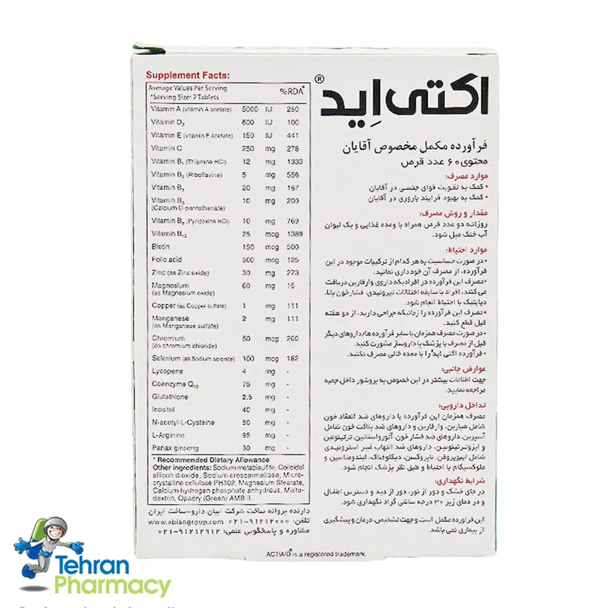 ترکیبات قرص اکتی اید آقایان ابیان دارو