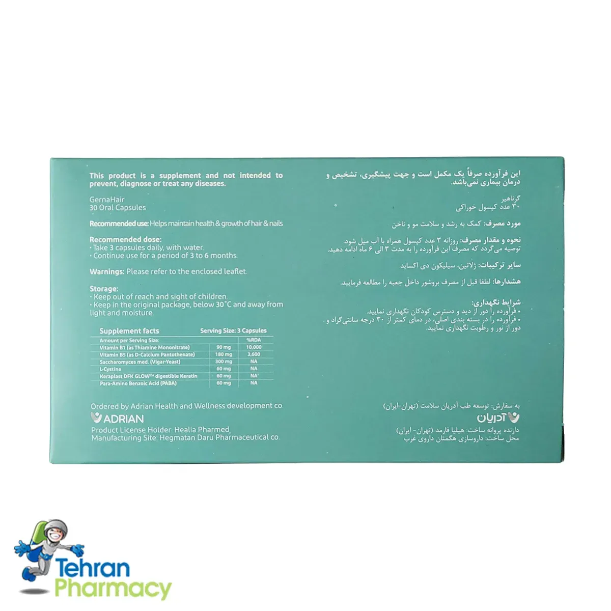 کپسول گرناهیر پریمیوم آدریان با فرمولاسیون تخصصی خود، انتخابی مناسب برای افرادی است که به دنبال کاهش ریزش مو، تقویت مو و ناخن و افزایش رشد مو هستند. این مکمل با تأمین مواد مغذی مورد نیاز فولیکول مو، به بهبود سلامت و زیبایی موها کمک میکند. شما میتوانید این محصول را با اصالت کالا و قیمت مناسب از داروخانه تهران تهیه نمایید.