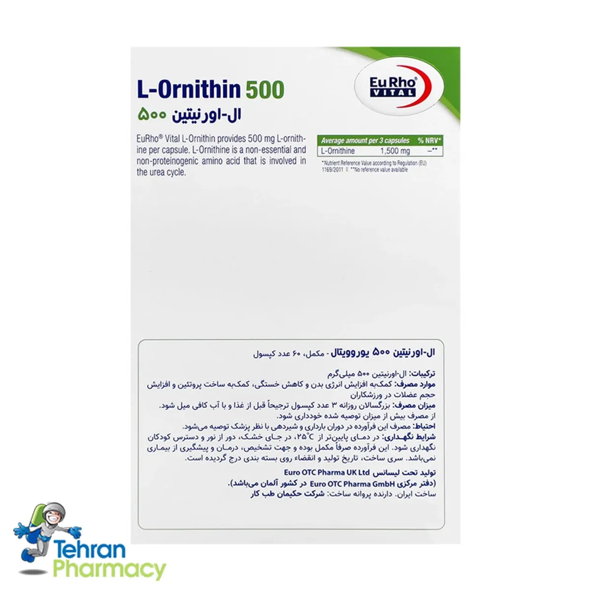 7. قیمت و نحوه خرید ال اورنیتین 500 یوروویتال از داروخانه تهران چگونه است؟