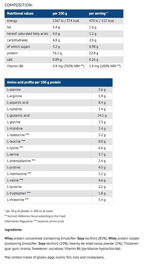 - مقدار مصرف: یک پیمانه (۳۰ گرم) پودر را در ۲۵۰ تا ۳۰۰ میلیلیتر آب یا شیر کمچرب حل کرده و بلافاصله مصرف کنید.